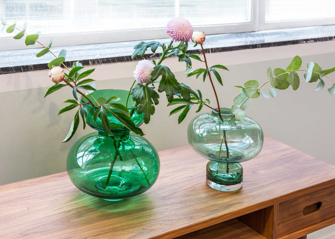 Vaza je oblikovana z namenom, da poudari lepoto cvetja. Oblikovalčev smisel za preoblikovanje vsakdanjih izdelkov v moderne in enostavne oblike, se je pri oblikovanju te vaze pokazal v povsem novi luči. Barvni odtenek je posebnost Georga Jensna, saj so jo razvili v sodelovanju z inštitutom za raziskave stekla Gafo na Švedskem.